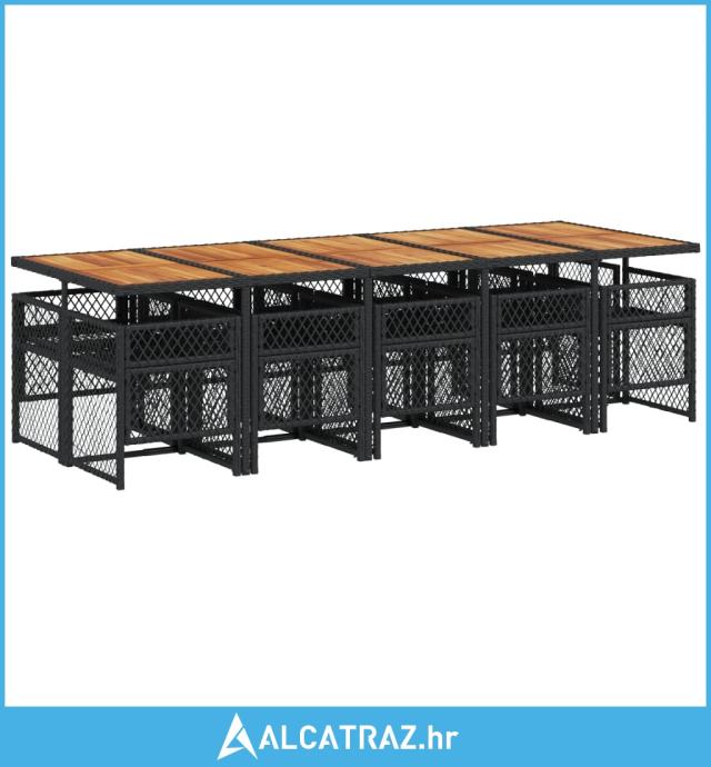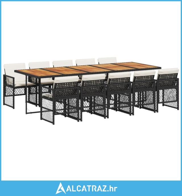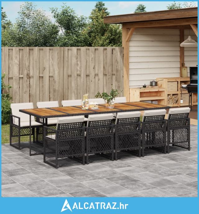 11-dijelni vrtni blagovaonski set s jastucima poliratan crni - NOVO