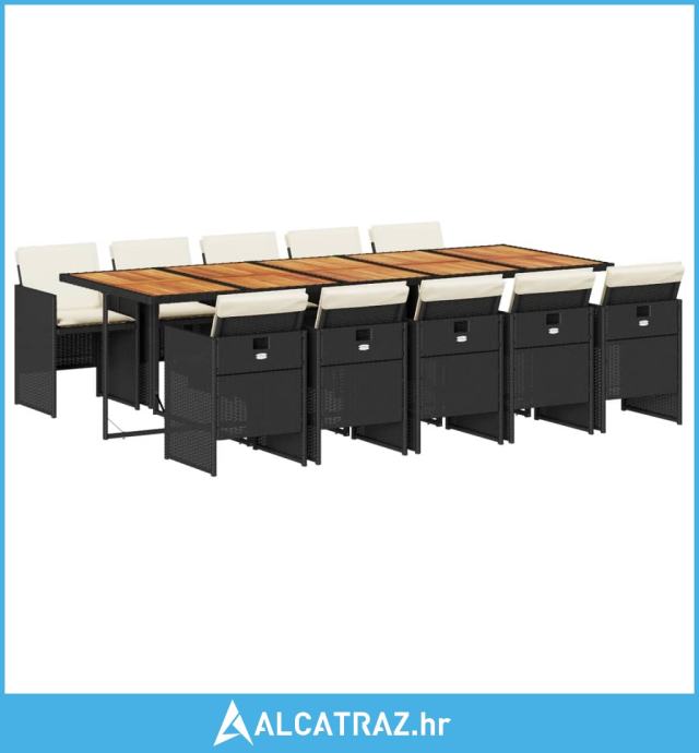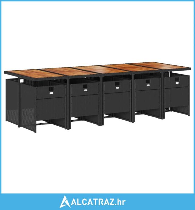 11-dijelni vrtni blagovaonski set s jastucima poliratan crni - NOVO
