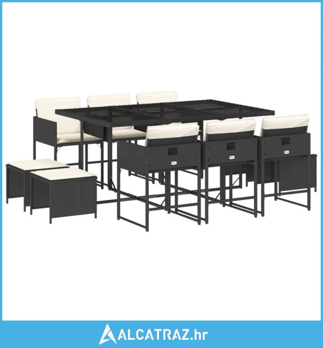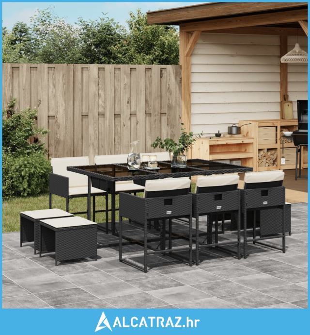 11-dijelni vrtni blagovaonski set s jastucima poliratan crni - NOVO