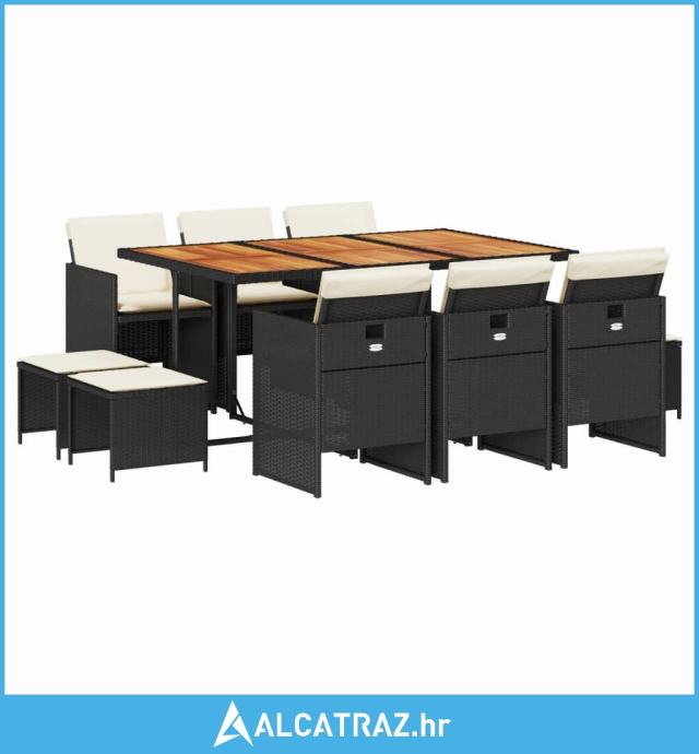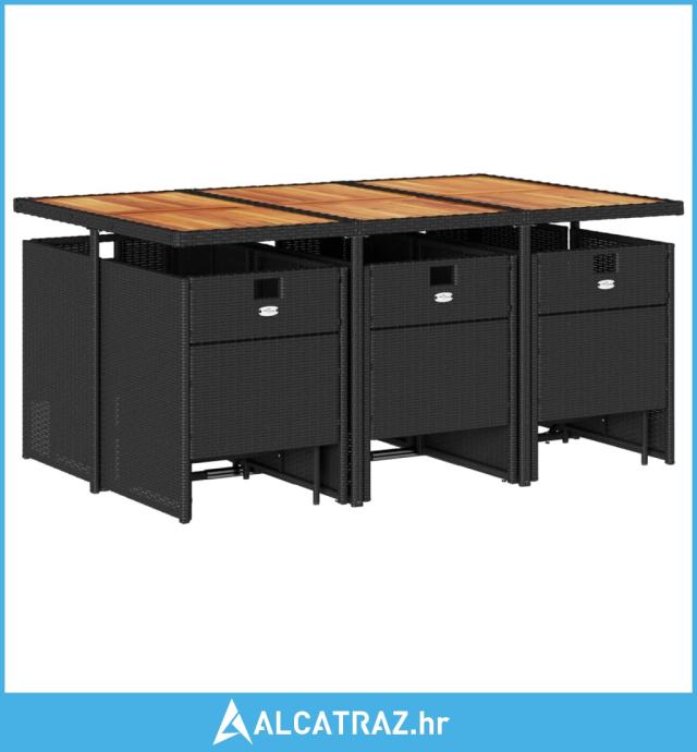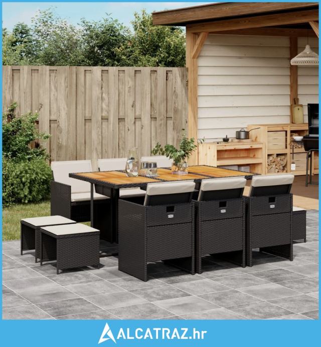 11-dijelni vrtni blagovaonski set s jastucima poliratan crni - NOVO