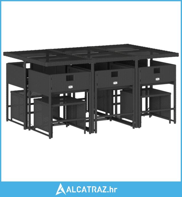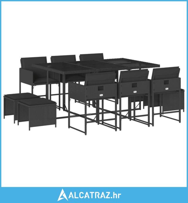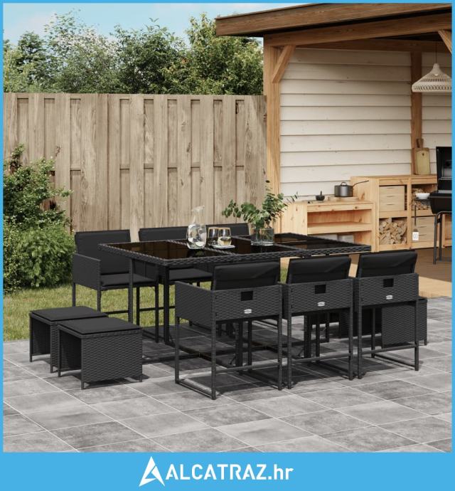 11-dijelni vrtni blagovaonski set s jastucima poliratan crni - NOVO