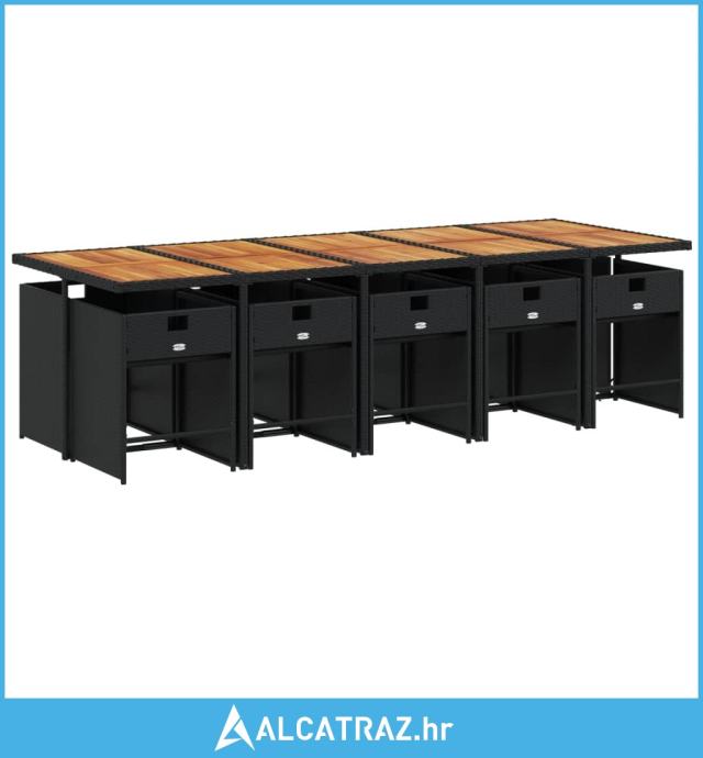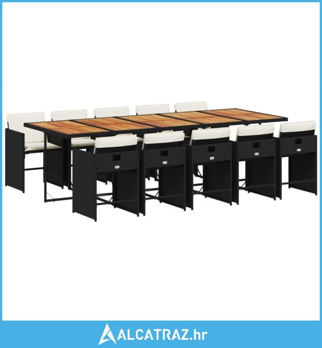 11-dijelni vrtni blagovaonski set s jastucima poliratan crni - NOVO