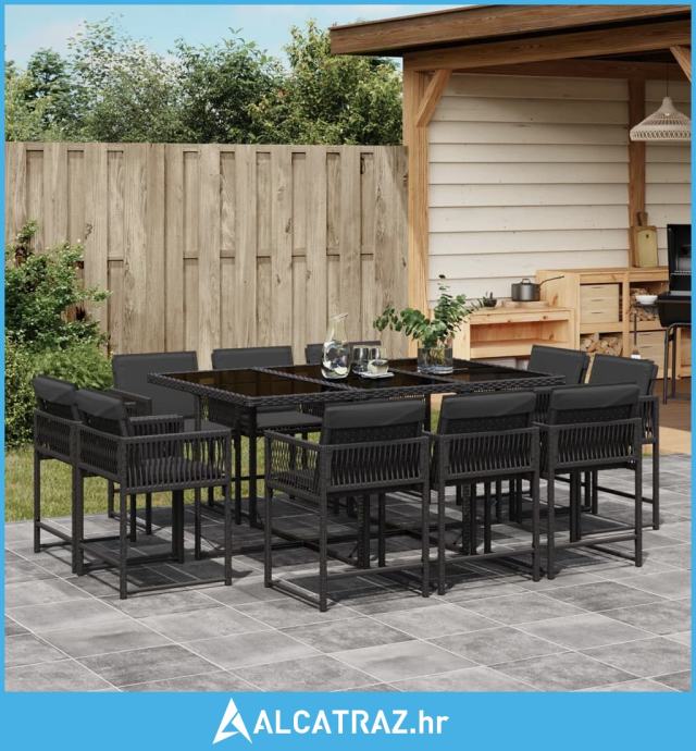 11-dijelni vrtni blagovaonski set s jastucima poliratan crni - NOVO