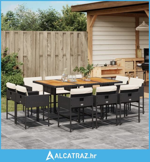 11-dijelni vrtni blagovaonski set s jastucima poliratan crni - NOVO