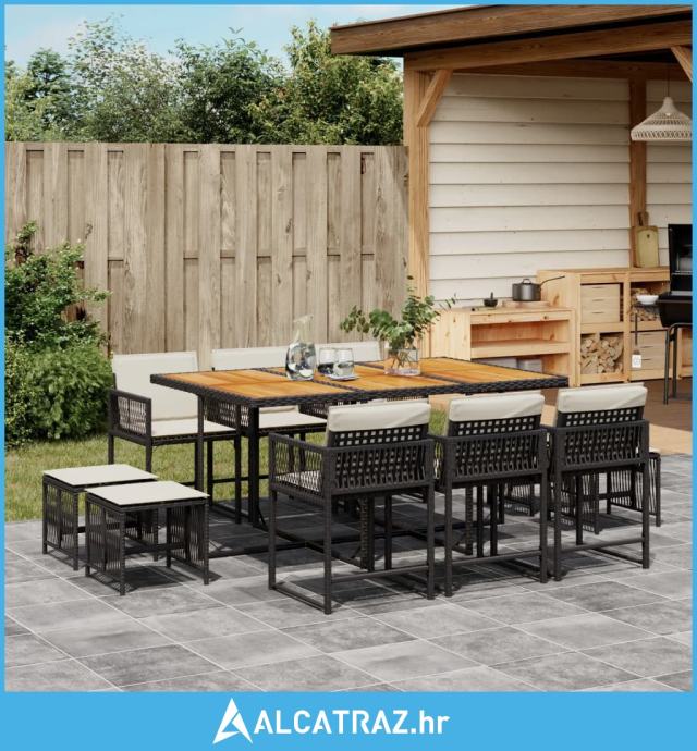 11-dijelni vrtni blagovaonski set s jastucima poliratan crni - NOVO