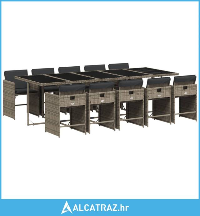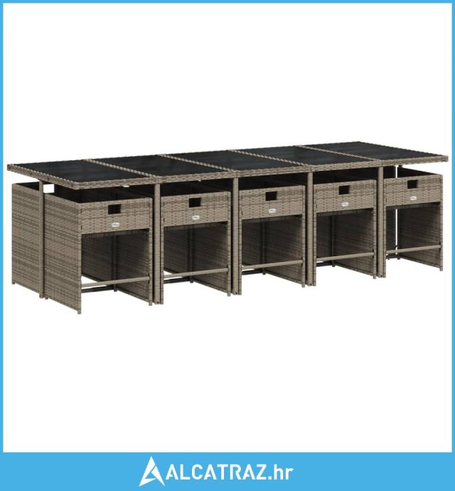 11-dijelni vrtni blagovaonski set s jastucima poliratan sivi - NOVO