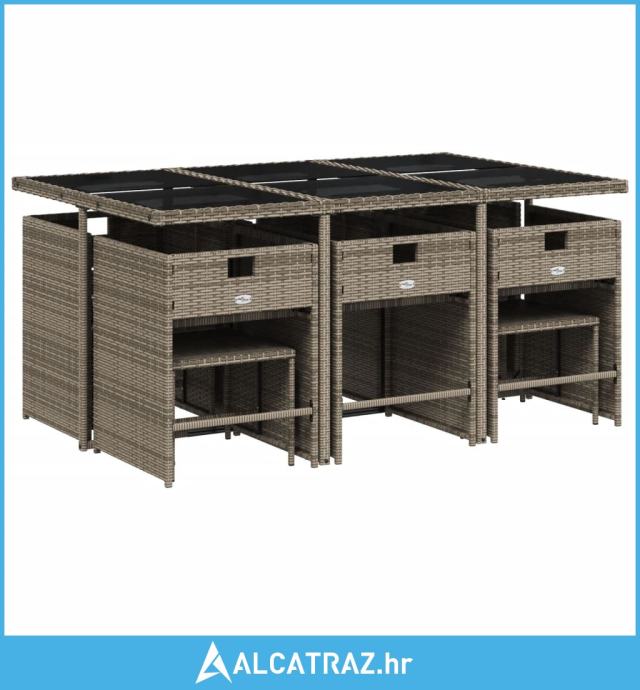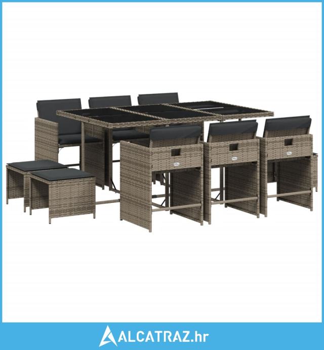 11-dijelni vrtni blagovaonski set s jastucima poliratan sivi - NOVO