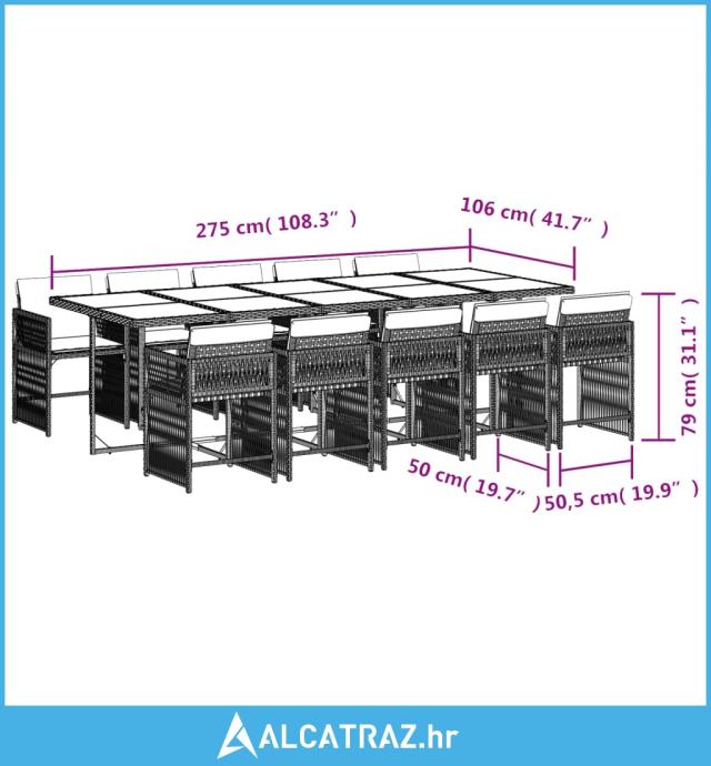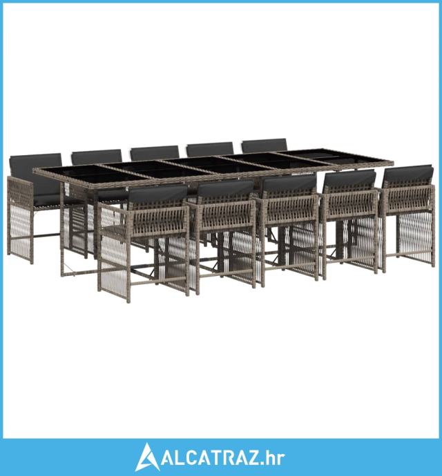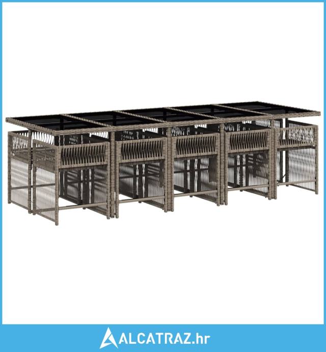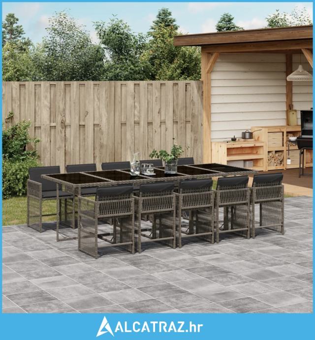 11-dijelni vrtni blagovaonski set s jastucima poliratan sivi - NOVO
