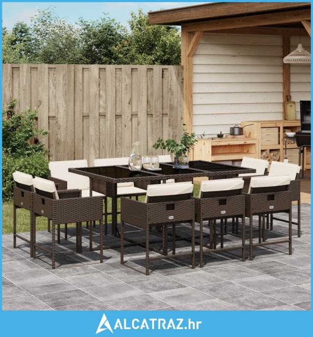 11-dijelni vrtni blagovaonski set s jastucima poliratan smeđi - NOVO