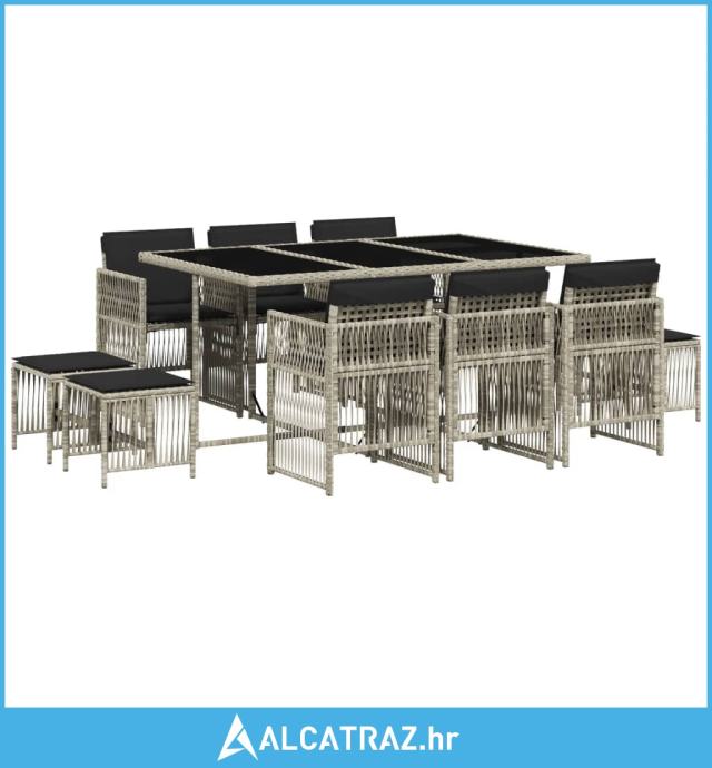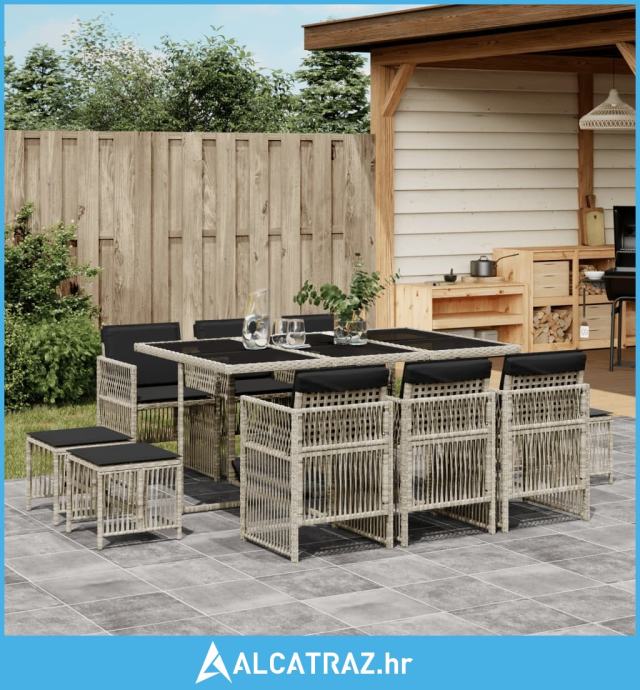 11-dijelni vrtni blagovaonski set s jastucima svijetlosivi - NOVO