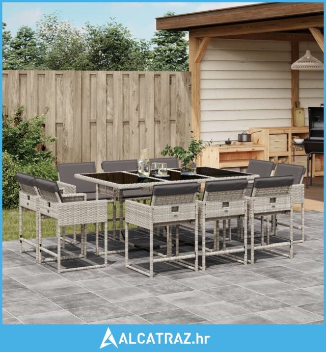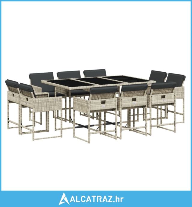 11-dijelni vrtni blagovaonski set s jastucima svijetlosivi - NOVO