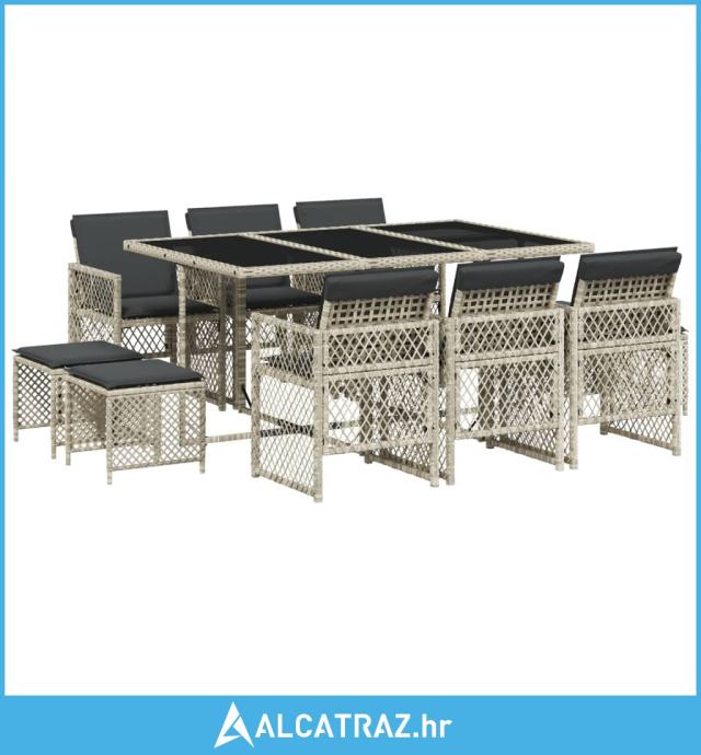 11-dijelni vrtni blagovaonski set s jastucima svijetlosivi - NOVO