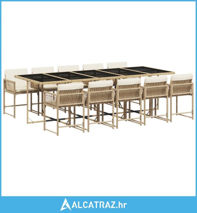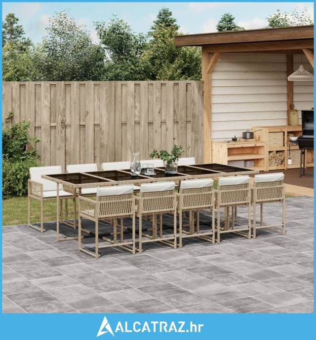 11-dijelni vrtni blagovaonski set od poliratana s jastucima bež - NOVO