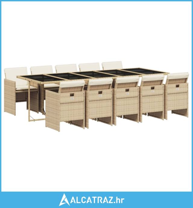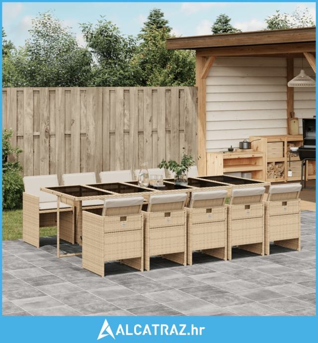 11-dijelni vrtni blagovaonski set od poliratana s jastucima bež - NOVO