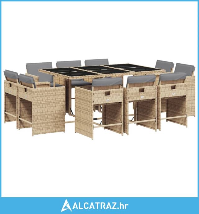 11-dijelni vrtni blagovaonski set od poliratana s jastucima bež - NOVO