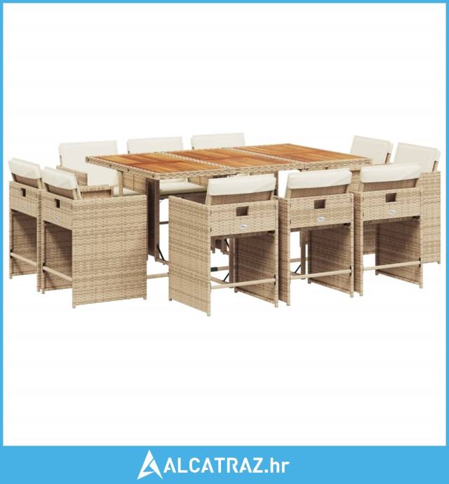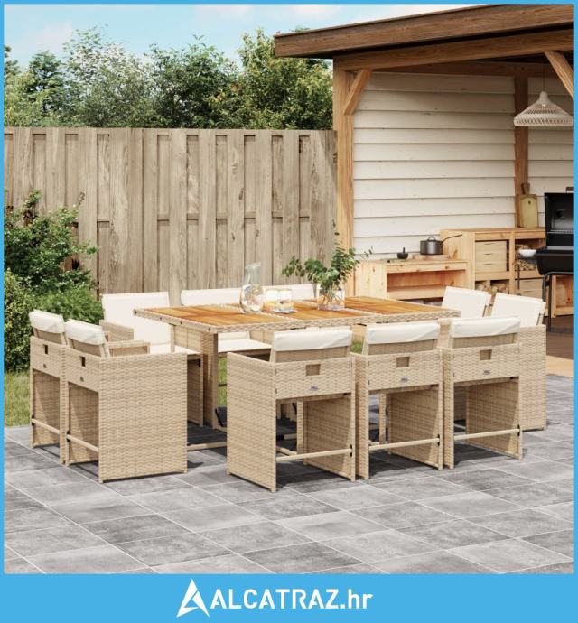 11-dijelni vrtni blagovaonski set od poliratana s jastucima bež - NOVO
