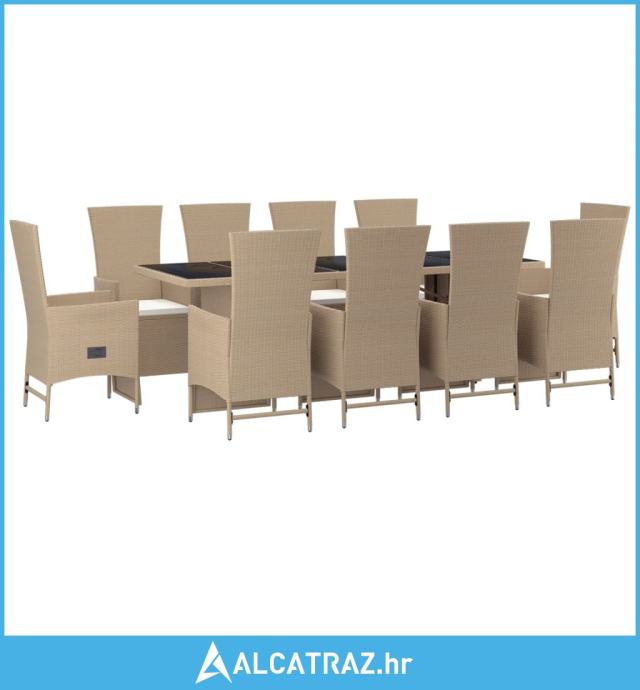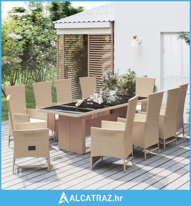 11-dijelni vrtni blagovaonski set od poliratana s jastucima bež - NOVO