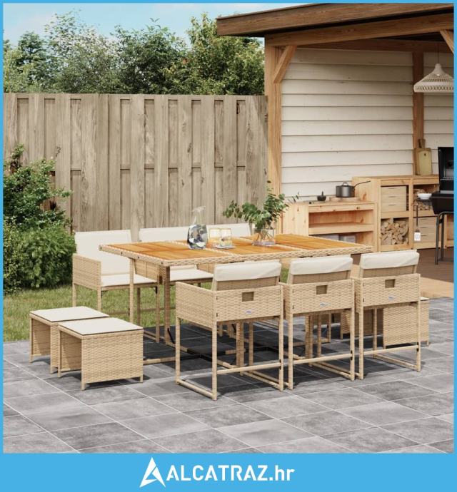 11-dijelni vrtni blagovaonski set od poliratana s jastucima bež - NOVO