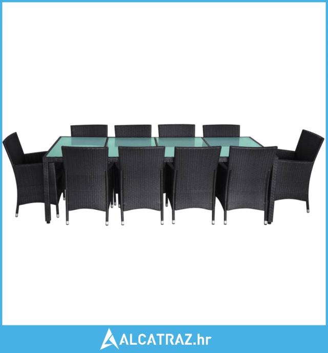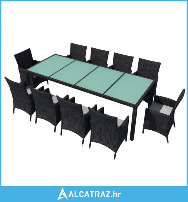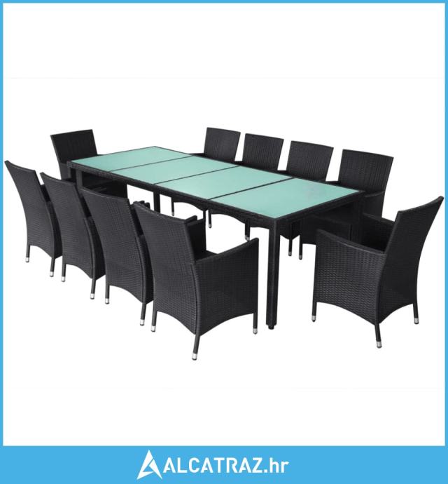 11-dijelni vrtni blagovaonski set od poliratana s jastucima crni - NOV