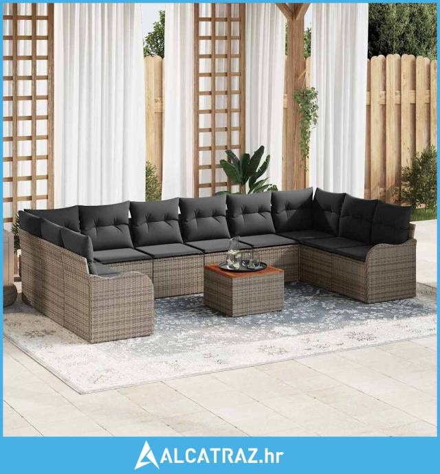 11-dijelni vrtni kauč set s jastucima sivi poli ratan akacija, 2-sjeda