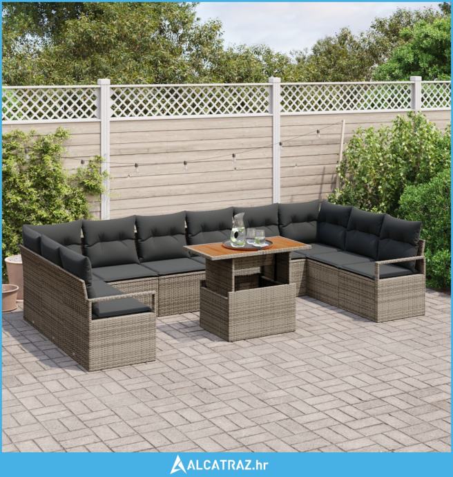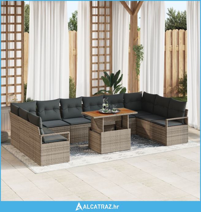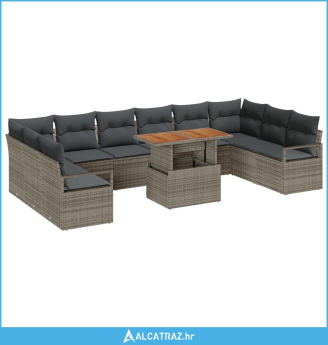11-dijelni vrtni sofa set s jastučićima sivi poli ratan akacija, 2-sje