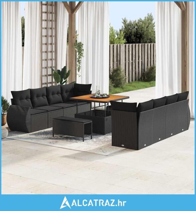 11 komada set vrtnih kauča s jastucima crni poli ratan akacija - NOVO