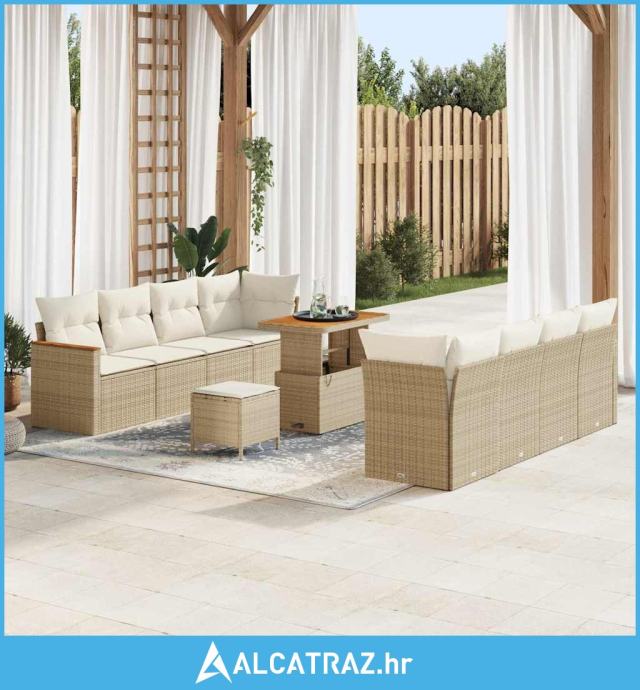 11 komadni set vrtne sofe s jastučićima bež poli ratan akacija - NOVO