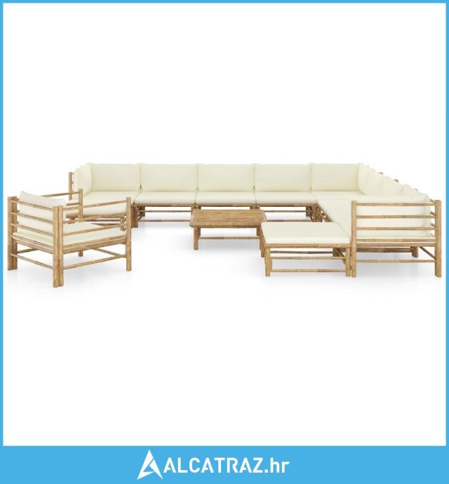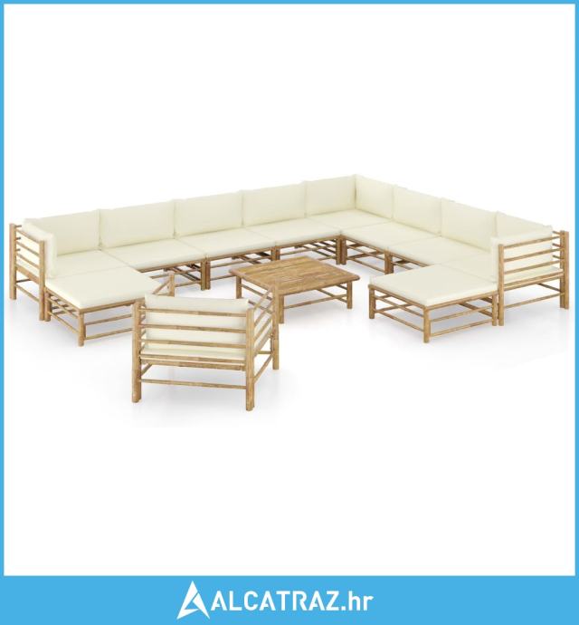 12-dijelna vrtna garnitura od bambusa s krem bijelim jastucima - NOVO