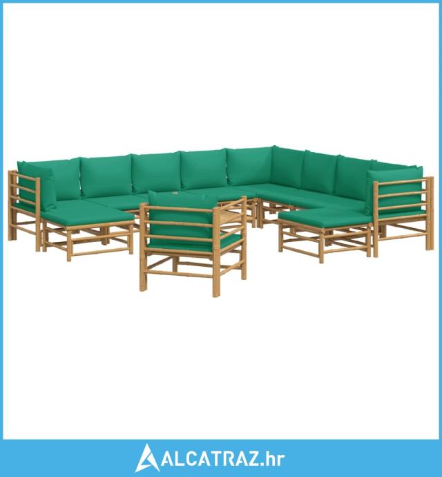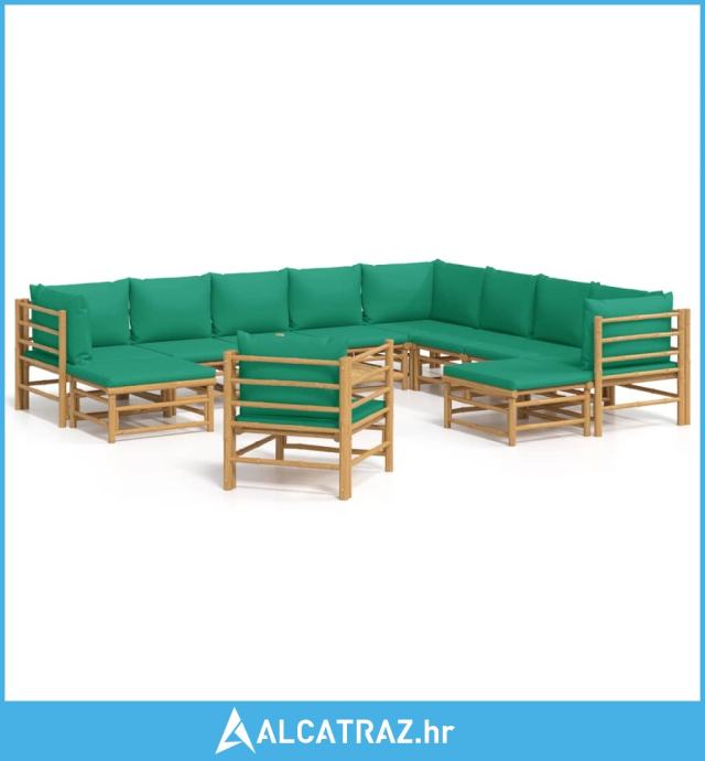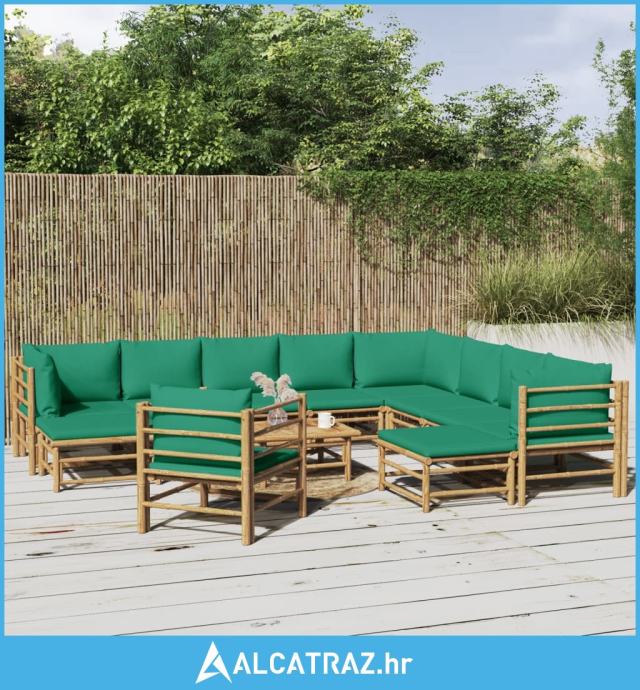 12-dijelna vrtna garnitura od bambusa sa zelenim jastucima - NOVO