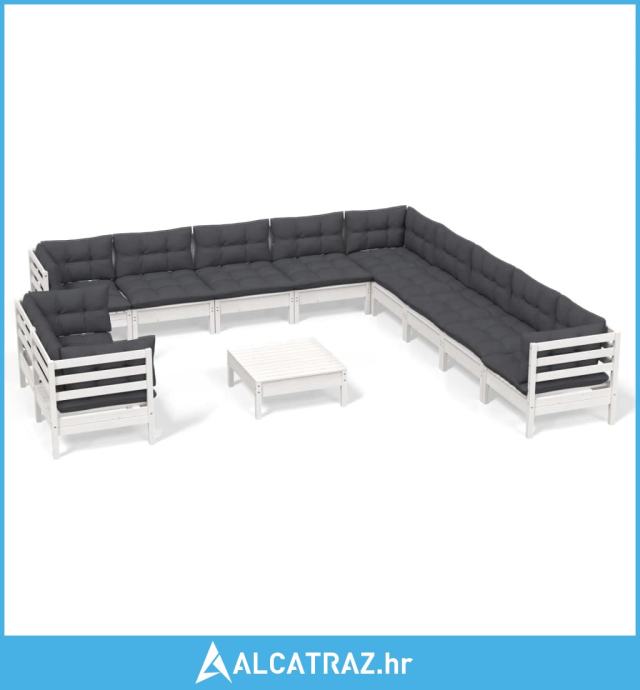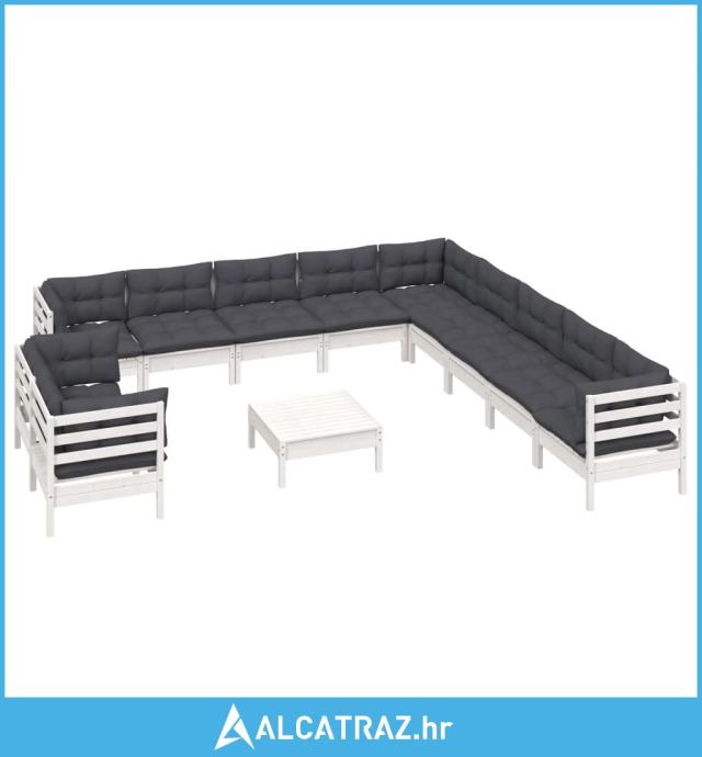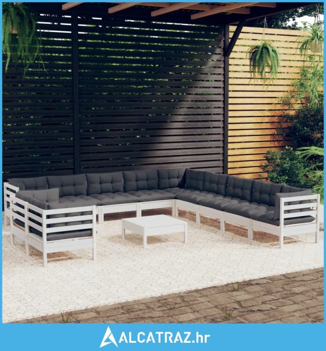 12-dijelna vrtna garnitura od borovine s jastucima bijela - NOVO
