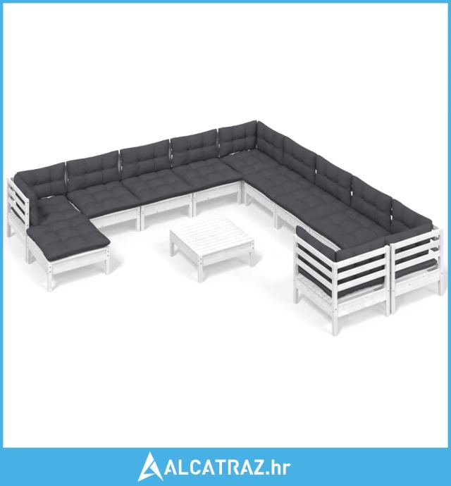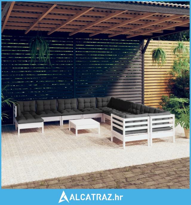 12-dijelna vrtna garnitura od borovine s jastucima bijela - NOVO