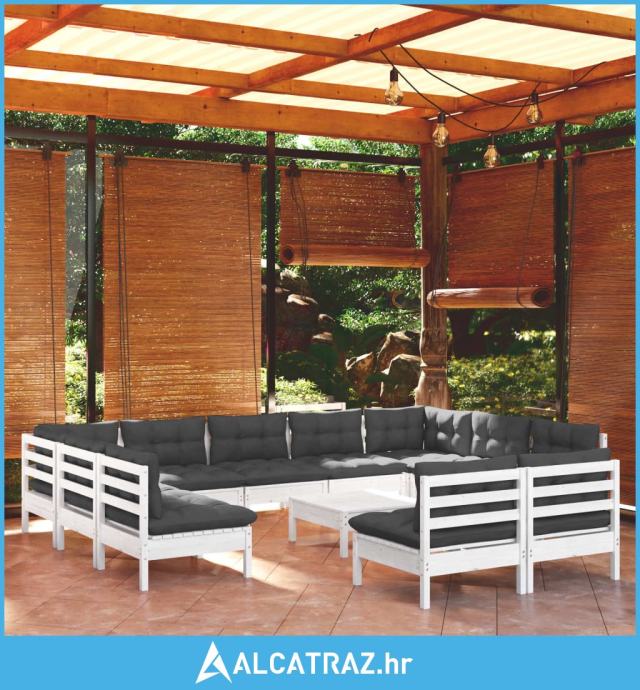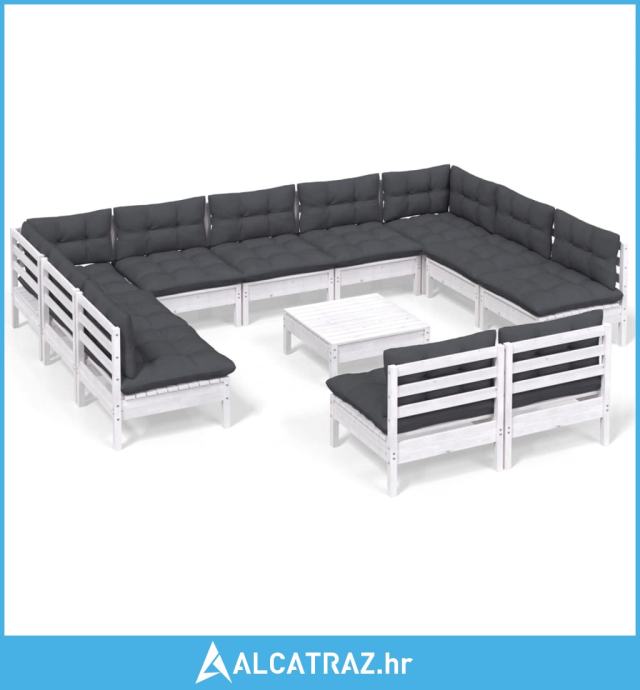 12-dijelna vrtna garnitura od borovine s jastucima bijela - NOVO