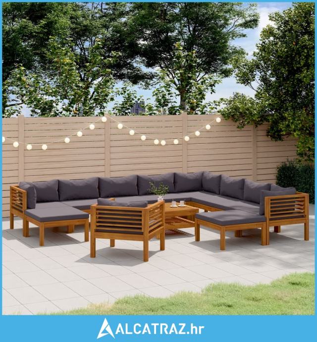 12-dijelna vrtna garnitura od masivnog drva bagrema s jastucima - NOVO