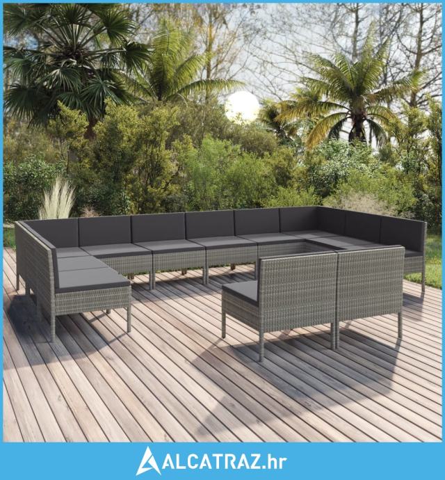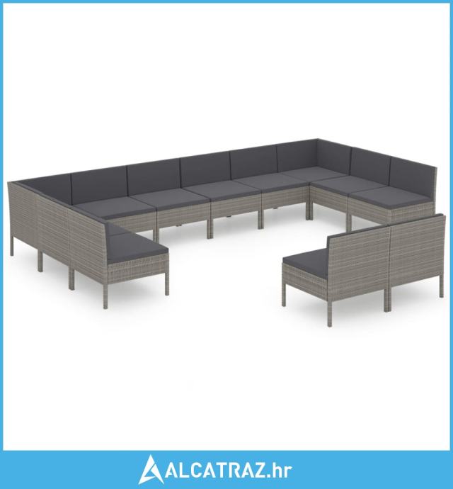 12-dijelna vrtna garnitura od poliratana s jastucima siva - NOVO