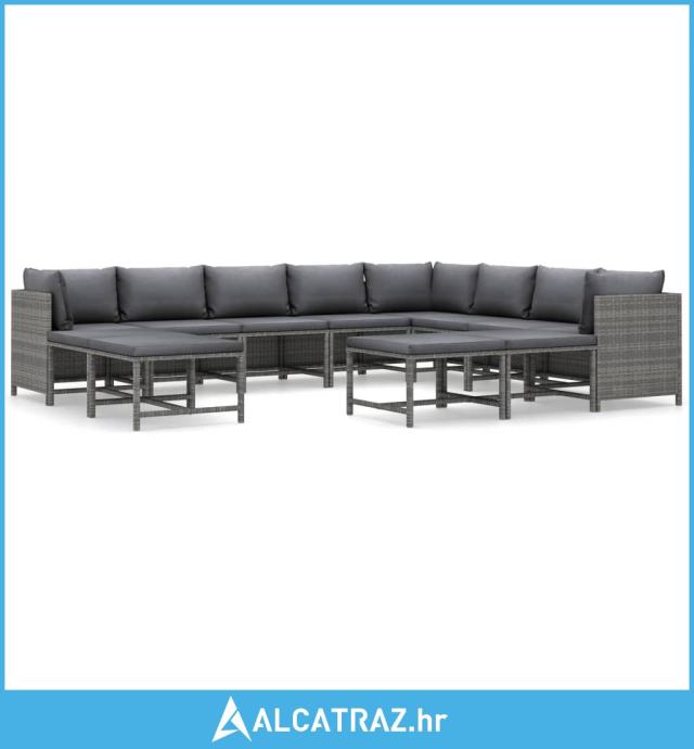 12-dijelna vrtna garnitura od poliratana s jastucima siva - NOVO