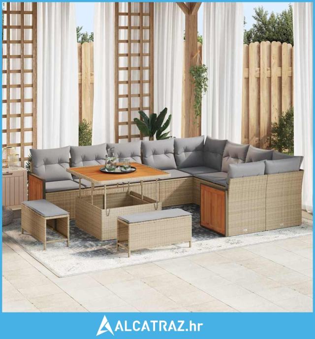 12-dijelni set vrtne sofe s jastučićima Bež Poli ratan Akacija - NOVO