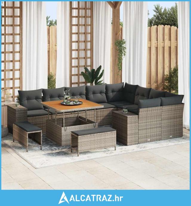 12-dijelni set vrtnih kauča s jastučićima Siva Poliratan Akacija - NOV
