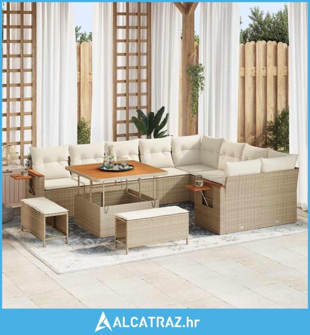 12-dijelni set vrtnih sofa s jastučićima bež poli ratan akacija - NOVO