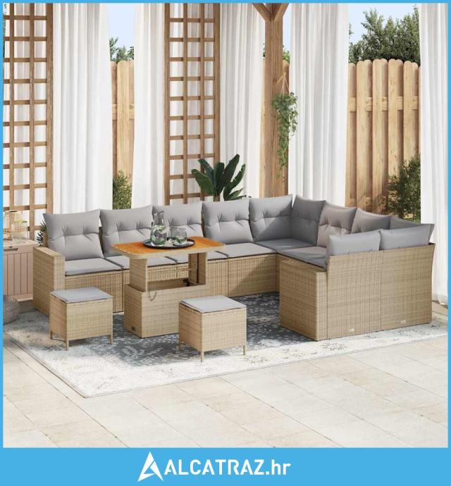 12-dijelni set vrtnih sofa s jastučićima bež poli ratan akacije, 3-dij