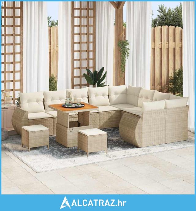 12-dijelni set vrtnih sofa s jastucima, bež, poliratan akacija - NOVO