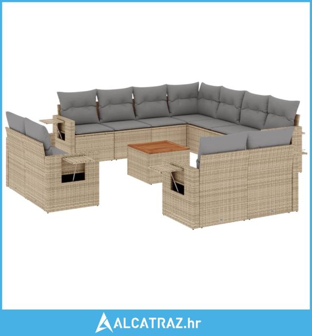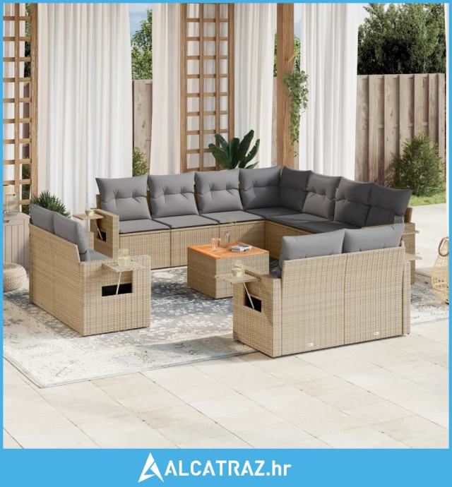 12-dijelni set vrtnih sofa s jastucima bež od poliratana - NOVO