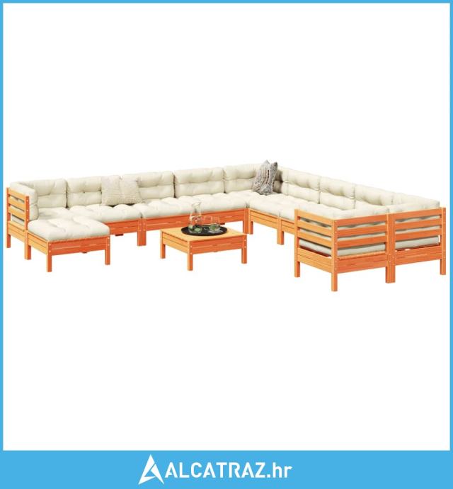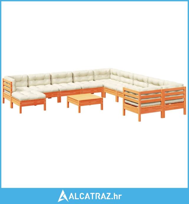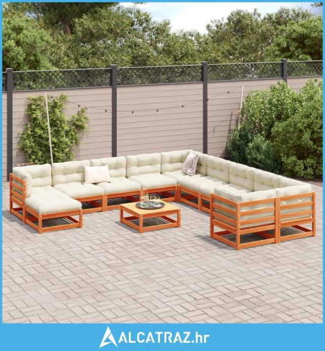 12-dijelni set vrtnih sofa s jastucima voštano smeđi borovine - NOVO