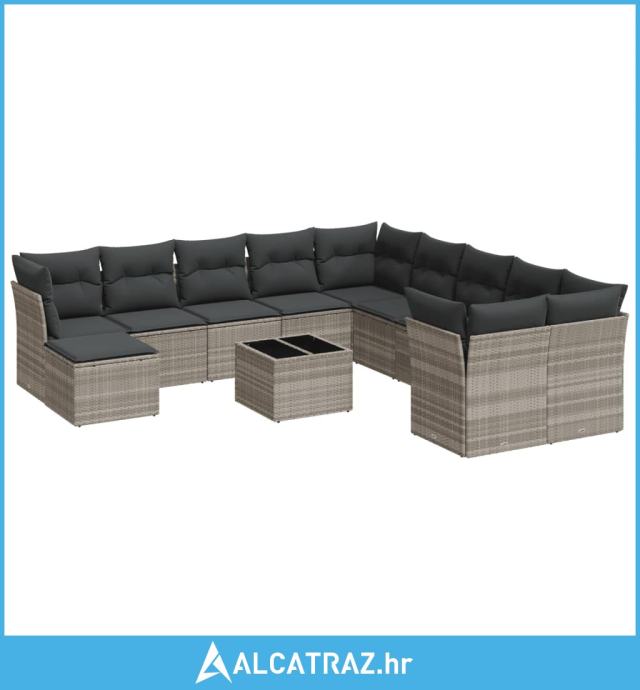 12-dijelni set vrtnih sofa poliratan s jastucima svijetlosivi - NOVO