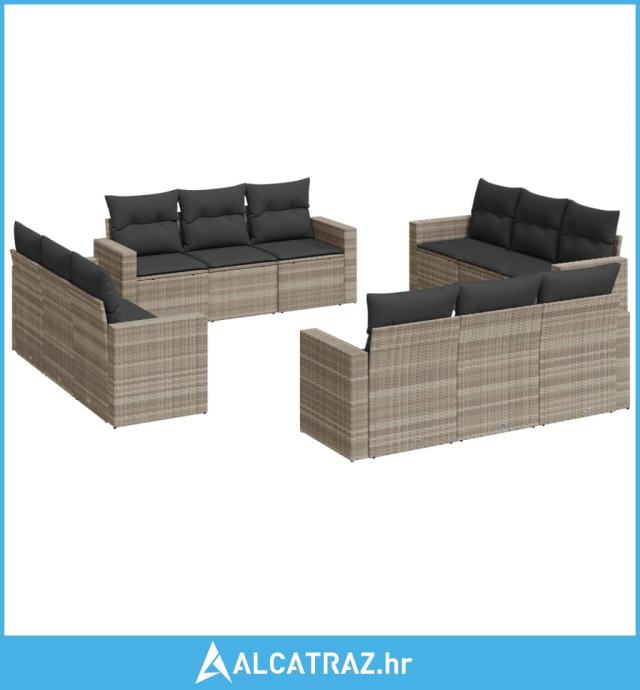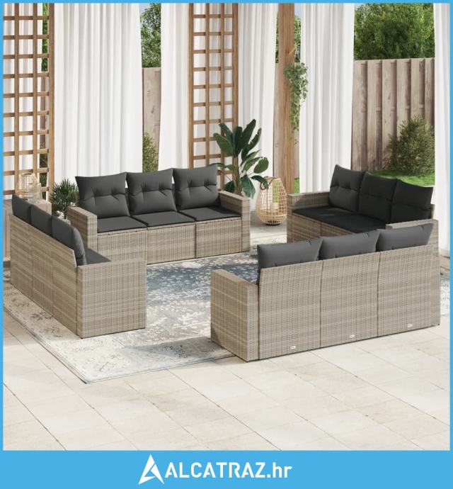 12-dijelni set vrtnih sofa poliratan s jastucima svijetlosivi - NOVO