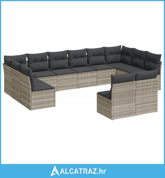 12-dijelni set vrtnih sofa poliratan s jastucima svijetlosivi - NOVO
