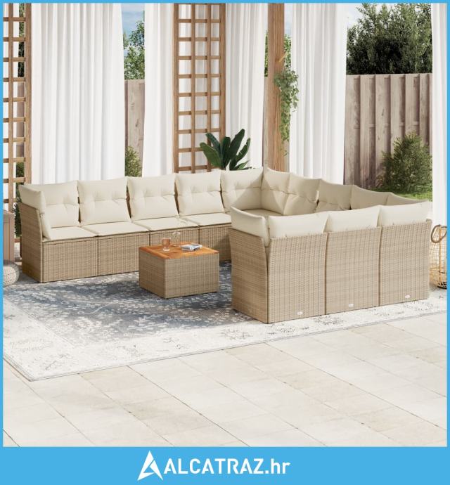 12-dijelni set vrtnih sofa od poliratana s jastucima bež - NOVO