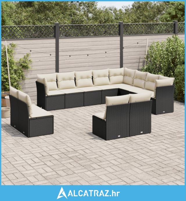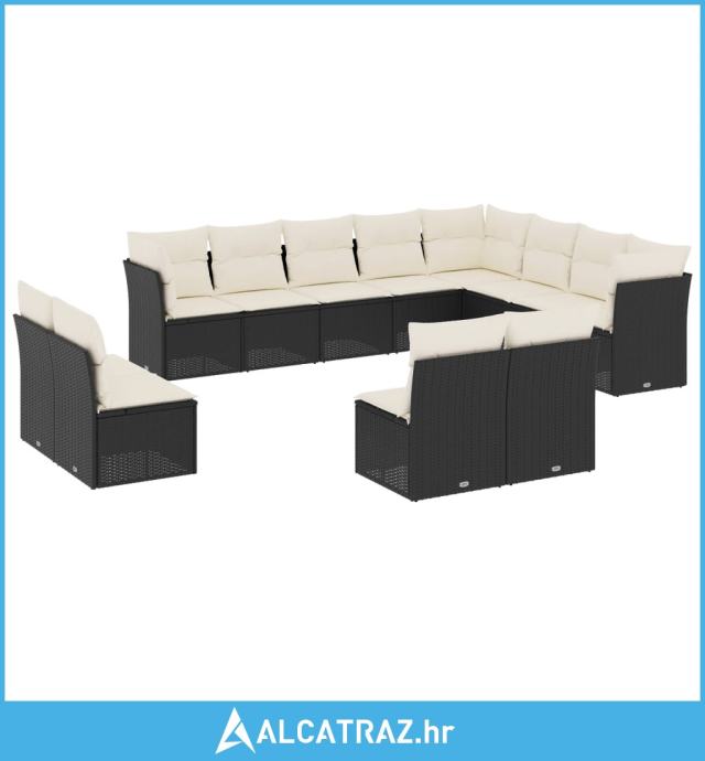 12-dijelni set vrtnih sofa od poliratana s jastucima crni - NOVO