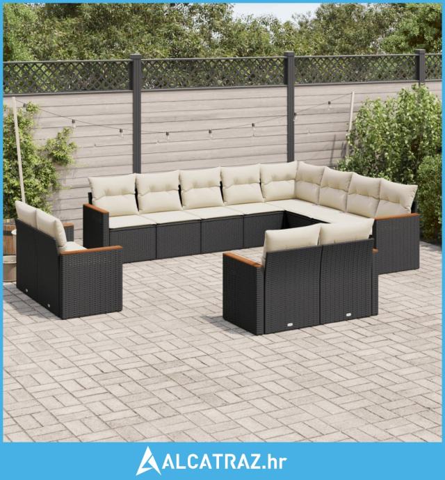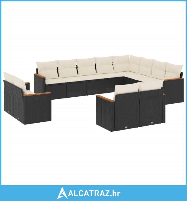 12-dijelni set vrtnih sofa od poliratana s jastucima crni - NOVO