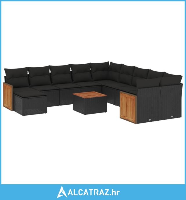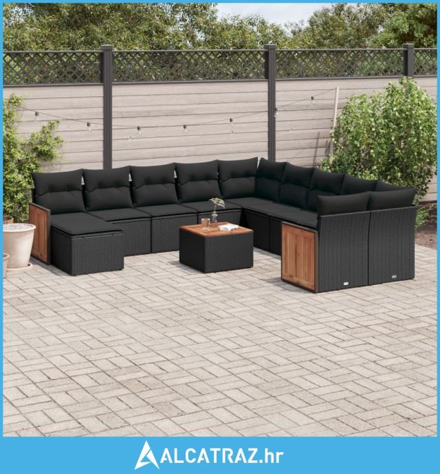 12-dijelni set vrtnih sofa od poliratana s jastucima crni - NOVO