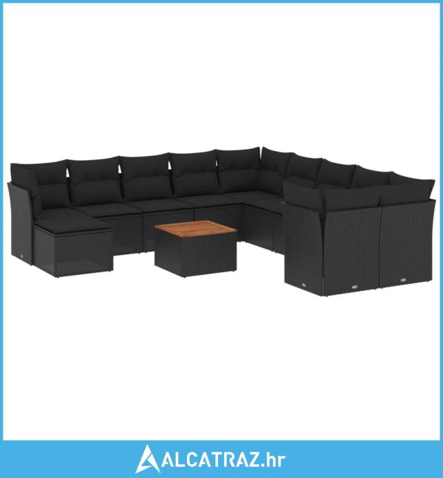 12-dijelni set vrtnih sofa od poliratana s jastucima crni - NOVO
